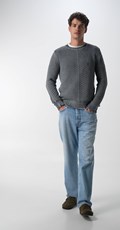 Ove Bwaii traperice predstavljaju savršen spoj beskompromisnog komfora i autentičnog "distressed" stila. Karakterizira ih relaxed fit kroj sa srednje visokim strukom i opuštenim nogavicama koje pružaju potpunu slobodu pokreta. Izrađene su od 12-oz indigo denima od čistog, djelomično recikliranog pamuka, čime Replay potvrđuje svoju predanost održivoj modi. Poseban karakter daju im enzimsko kameno pranje, lagano izbjeljivanje i blago "dirty" bojenje, što rezultira unikatnim, rabljenim izgledom. Dizajn je upotpunjen ručno izrađenim naborima (whiskering), ogrebotinama i suptilnim poderotinama koje stvaraju bogat kontrast boja. Stražnje džepove definiraju kultni "gull-wing" prošiv izveden Cornely vezom i legendarni "R" logotip, dok red ukrasnih gumba duž struka dodaje upečatljiv završni detalj.